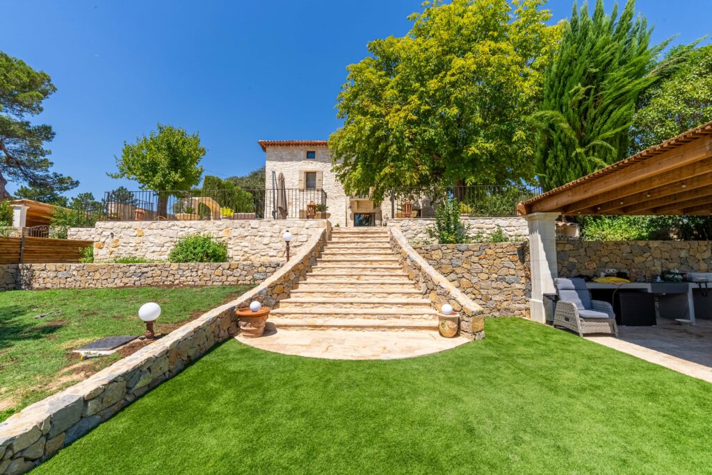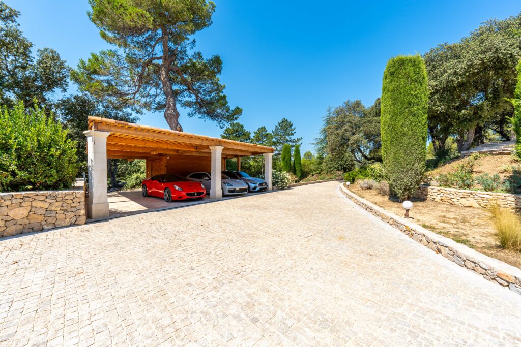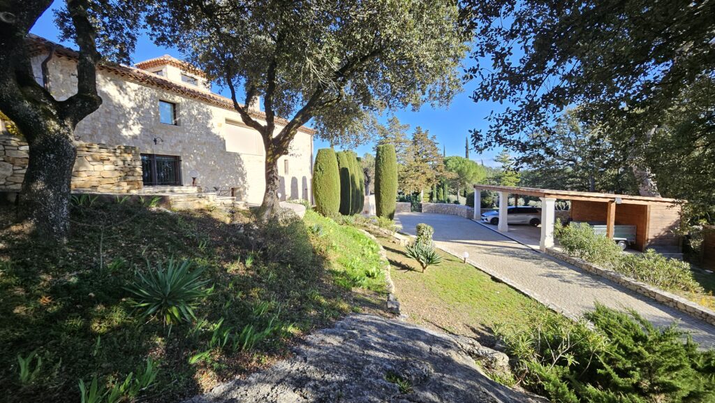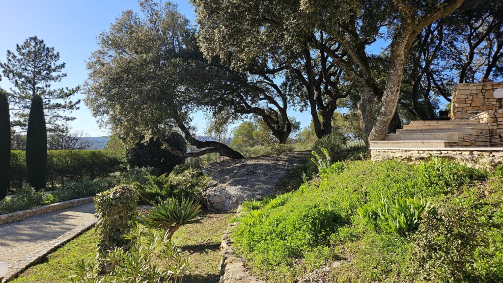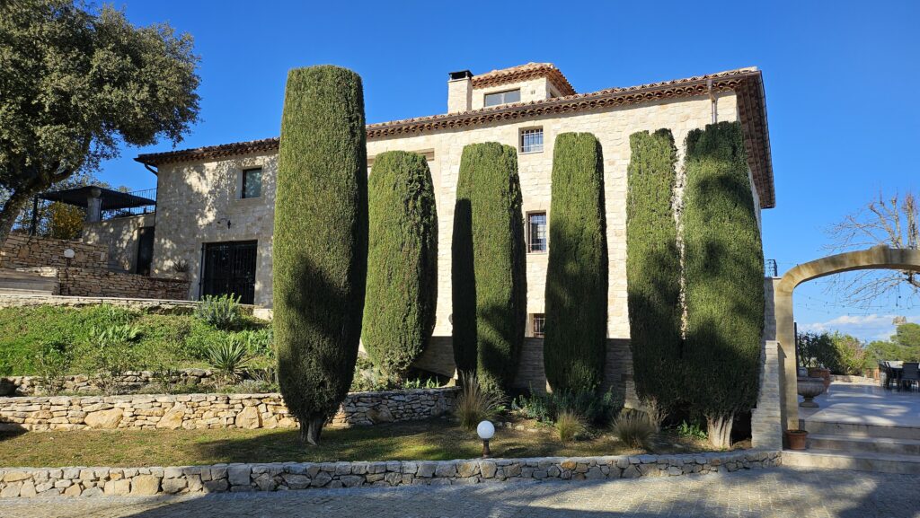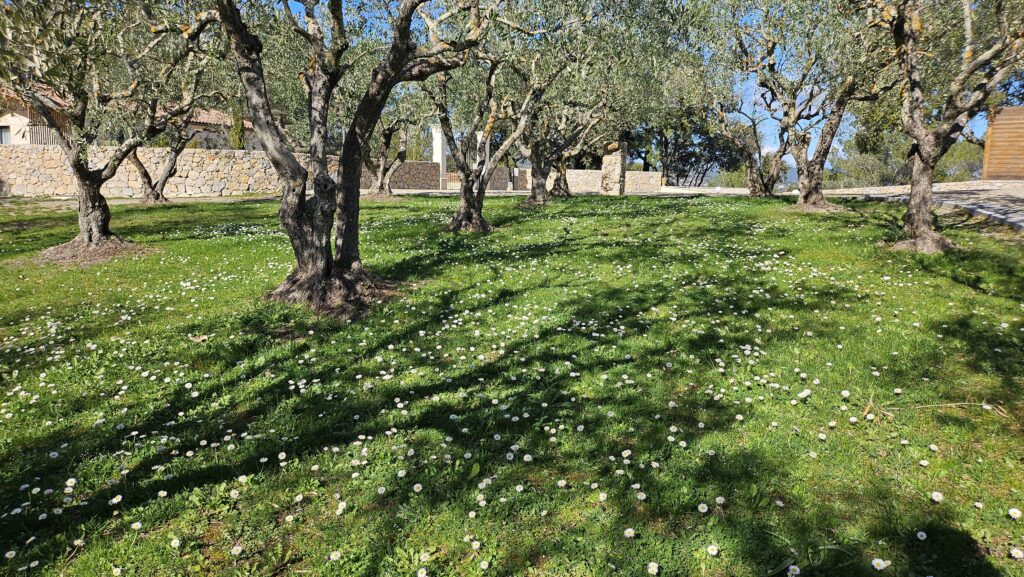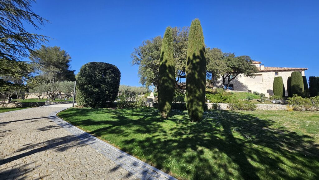 Le domaine abrite également quatre gîtes indépendants, chacun composé de deux chambres et de deux salles de bain, ainsi qu’une seconde piscine généreusement équipée en bains de soleil. Une oliveraie en production, quelques rangs de vigne et un chemin pavé qui relie harmonieusement l’ensemble complètent ce cadre d’exception.